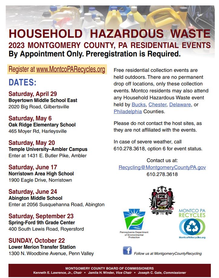 Hazardous Waste Disposal March 2, 2023 DEP has published the dates and locations for the Southeastern Region for Household Hazardous Waste Drop Offs for 2023. You can see the list along
