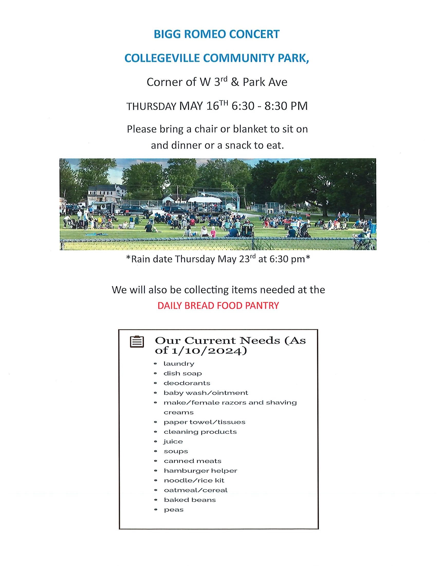 We want to hear your opinion of would benefit our parks. Please take a moment to fill out our survey! https://www.research.net/r/CollegevilleParks